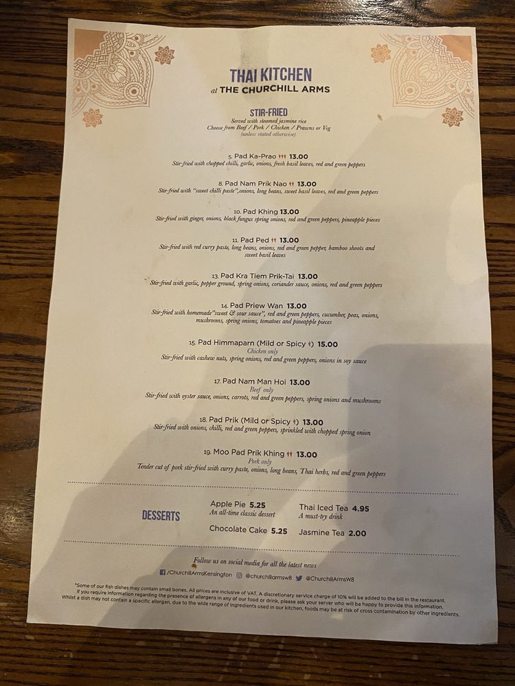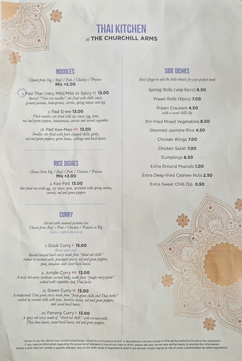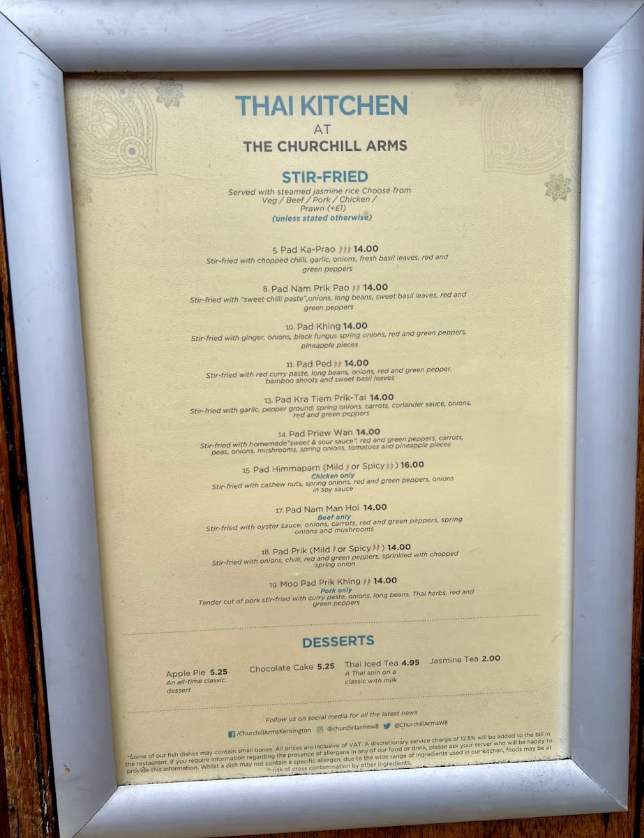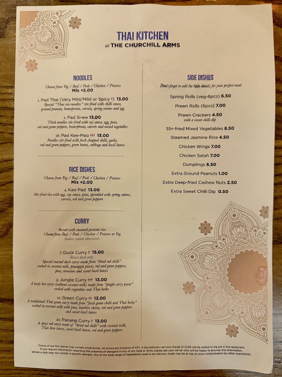 The interior is adorned with an eclectic collection of memorabilia, from British flags draping the ceiling to captivating art of Winston Churchill, offering a visual feast that enhances your experience. Whether you're attracted by the inviting aroma wafting in from the adjacent Thai kitchen or the rich history encapsulated in its walls, The Churchill Arms is more than just a drinking spot; it's a journey through time and culture.