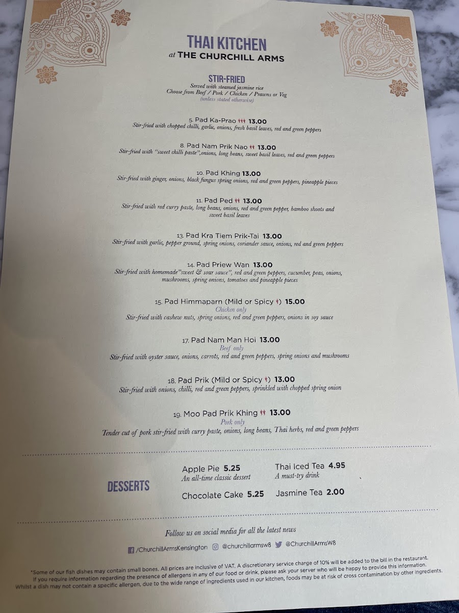 Welcome to The Churchill Arms in Kensington, a splendid pub that offers a delightful blend of traditional British charm and an exquisite Thai dining experience. Located at 119 Kensington Church St, this historic establishment is not only renowned for its stunning floral displays but also for the authentic flavors that delight its patrons. With a phone number of +44 20 7727 4242, you can easily plan your visit to this enchanting locale.